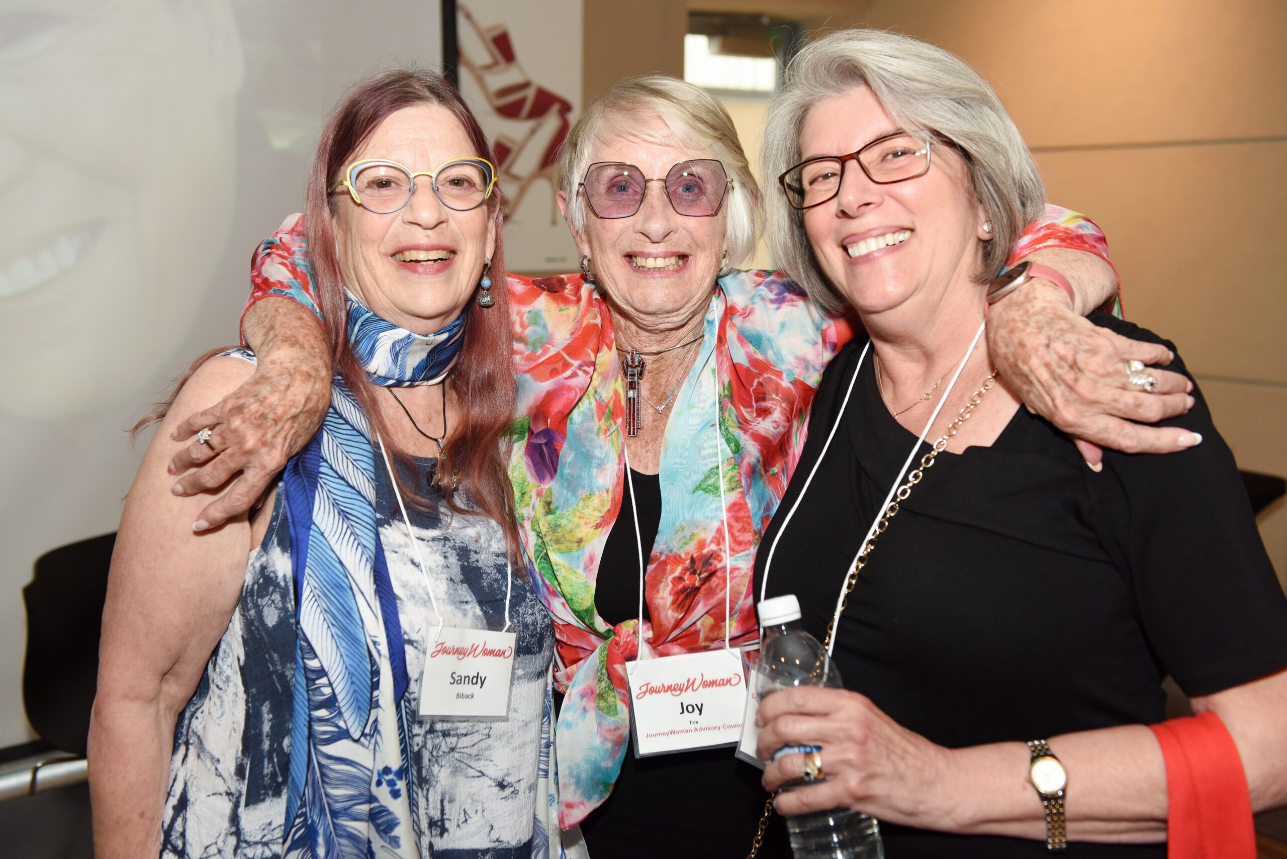 Evelyn Hannon’s daughter, Erica Ehm, Carolyn Ray and Lotus Ehm, the newest JourneyWoman team member/ Photo credit Carolyn Ray