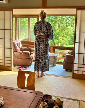 My first onsen experience is at Misasa Onsen, an 850-year old sanctuary. Clothed only in a kimono and slippers provided by the hotel, I walk past a waterfall into an area with two entrances. One has a red banner over the entrance and Japanese letters. The other has a blue banner and Japanese letters. Phones aren’t allowed, so I can’t whip out Google Translate to know which is men’s or women’s. I tentatively step into one hallway and walk down it, only to have an attendant call to me. ‘Oh no, I’ve walked into the men’s onsen’, I think, horrified. He runs up to me, and points at my feet, which are still in slippers. No, no, no he says and I realize that I’ve walked into the bathroom with shoes on, a very big faux pas. Quickly, I rush back to the main area and put my shoes in the appropriate shelf, bowing and apologizing as I walk away.
