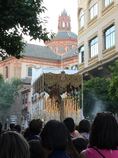 Immediately following the FeMAS concerts, the 24/7 pageantry of Semana Santa commences on the Saturday eight days prior to Easter. Dozens of ‘brotherhoods’ with hundreds (sometimes thousands) of members fill the streets as they process for up to 14 hours alongside their parish’s massive pasos (human-borne floats). Many of the pasos date back centuries. There is almost always an image of the grieving Virgin Mary, surrounded by myriad candles that are frequently replaced or re-lit so as to create a bright focus of piety.