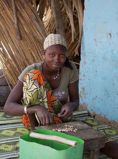While travelling in Africa, I came upon this beautiful young girl at work, processing peanuts in a small Senegalese village.