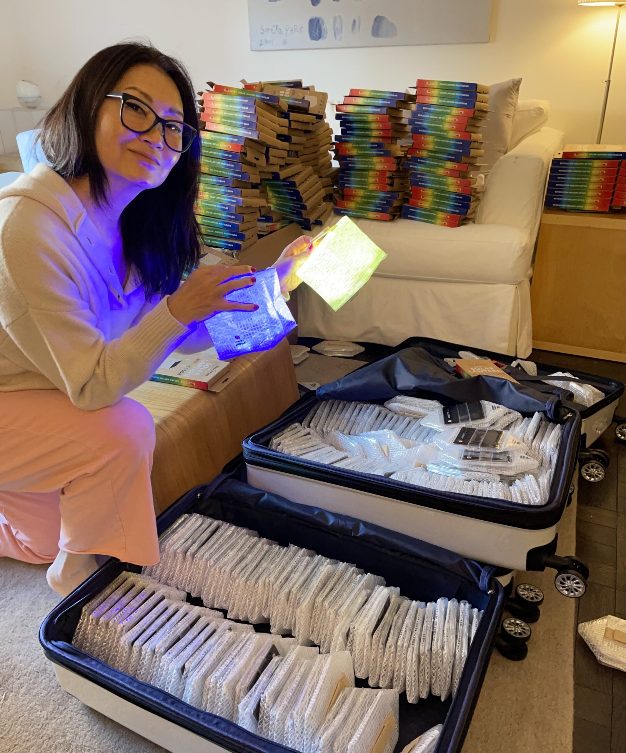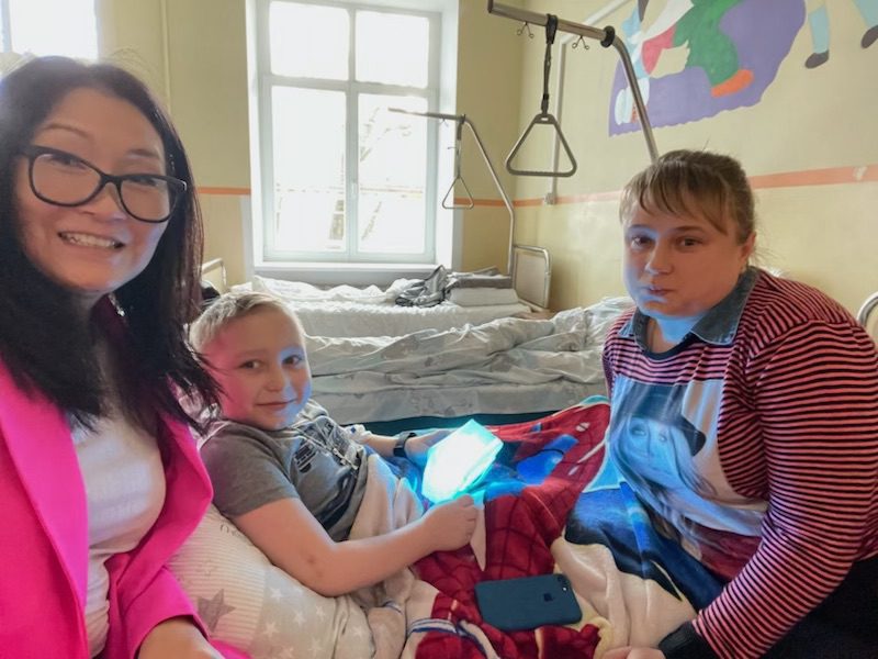 True to her values, when Chun visited Ukraine, she went alon, without fanfare. She stayed with a friend who is a nurse at one of the children’s hospitals in Lviv. The friend connected her to more hospitals and a refugee camp, where she hand delivered her own lights to those who needed them.