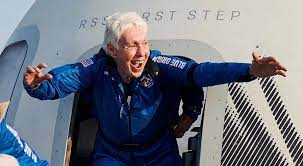 Photo: Wally Funk emerging from the New Shepard Capsule, after becoming the oldest person ever to go into space, breaking John Glenn’s record. Photo by Blue Origin (Source)