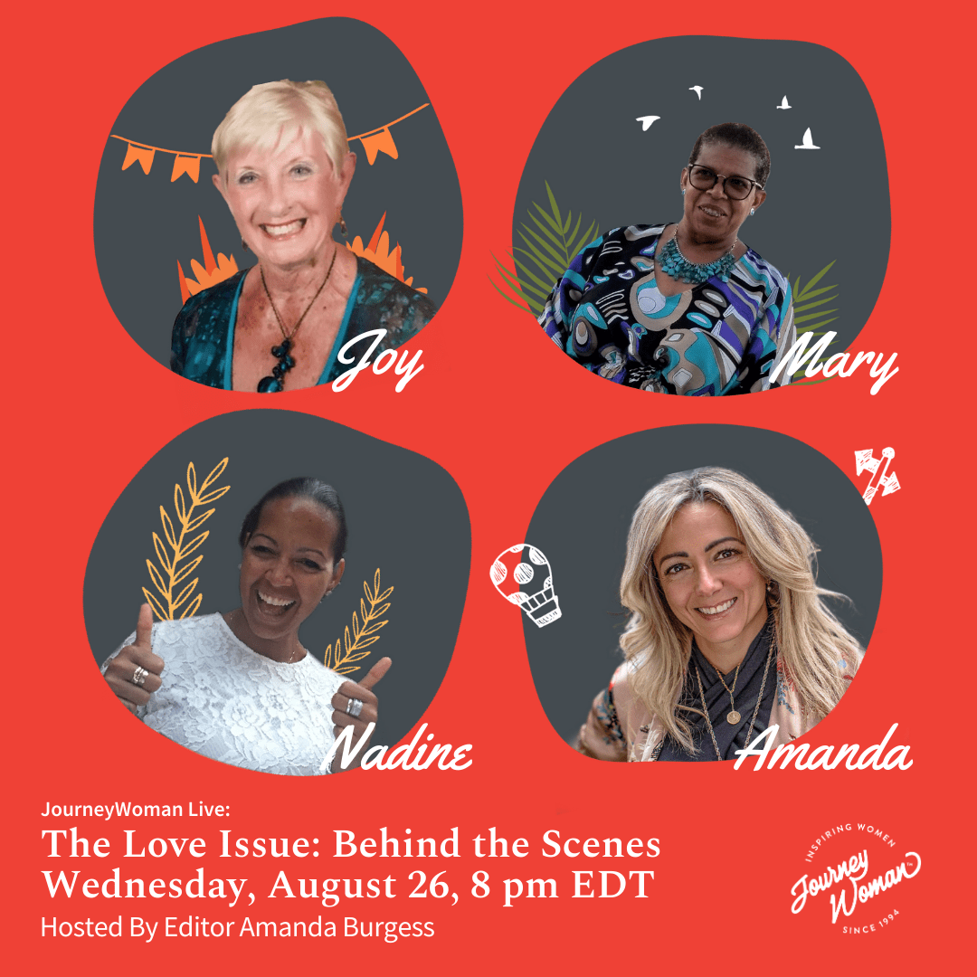 For the first session on our August Love Issue, we invited Mary and Nadine to join us (along with Joy!), and share their stories of love lost and found. You can view this (and laugh at our technical errors) here.