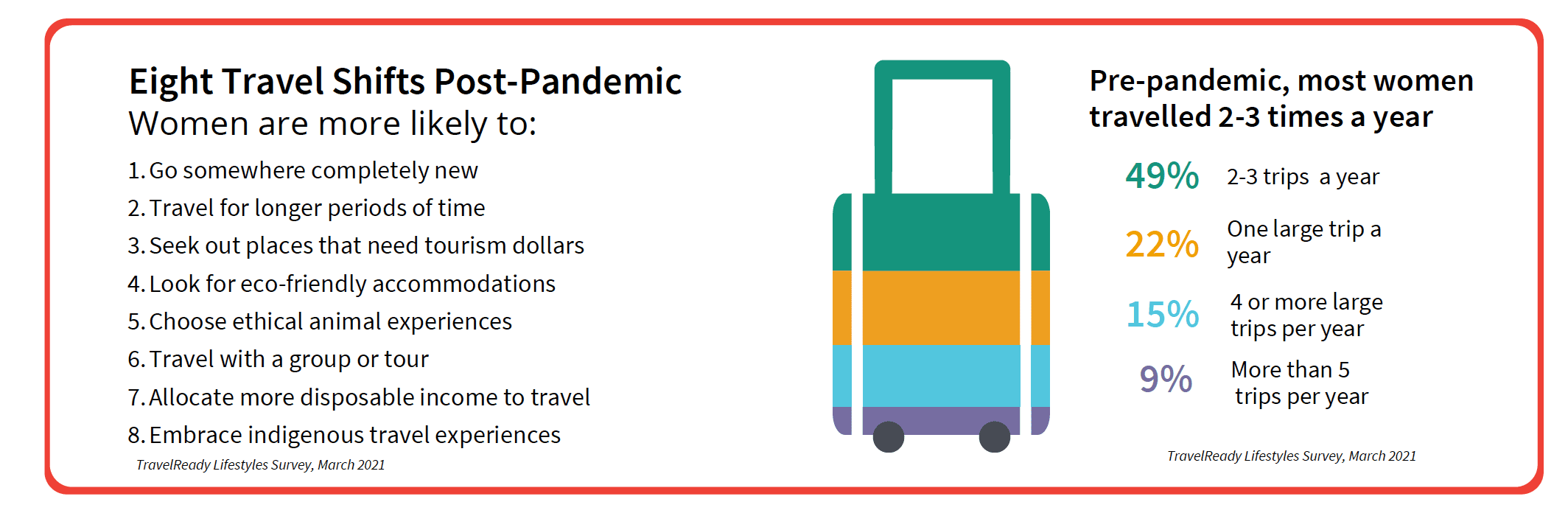 - Women make 80 to 85 percent of travel decisions and comprise two-thirds of all travellers. Our impact is significant – and it goes well beyond our role as travel consumers.