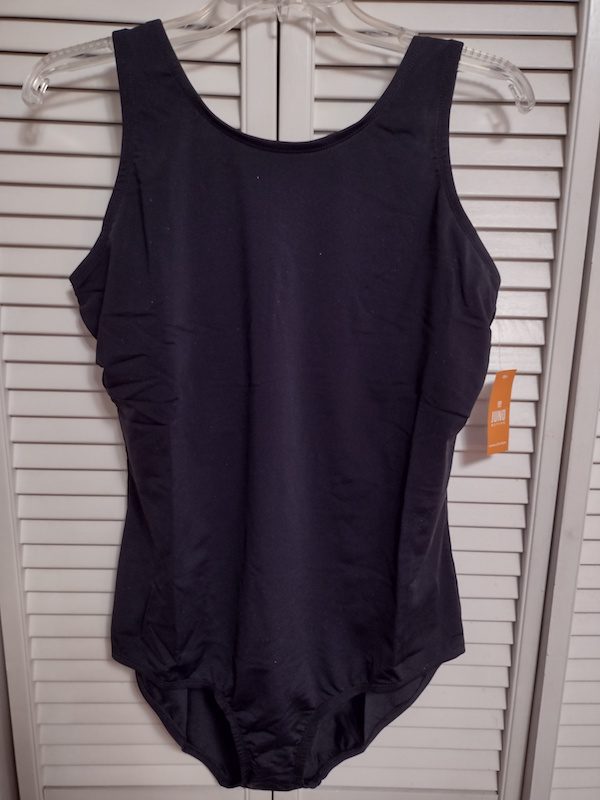 As a follow-up to my queries about bras and swimsuits for larger and taller women who travel, I’ve been asked to test the Juno Active Quik Energy Spa Suit, in my size, a 1XTall. I got it in Black, although it also comes in a prettier pale turquoise.