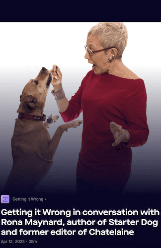 Getting it Wrong in conversation with Rona Maynard, author of Starter Dog and former editor of Chatelaine