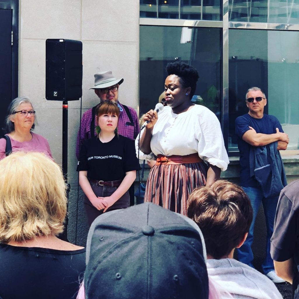Myseum’s Women of the Ward Walking Tour: Cecelia Reynolds, an African-American slave who escaped from her captors on a trip to Niagara Falls, shares her story in, 2019 (Photo: Carolyn Ray)